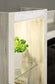 | Details | Includes TV stand, 2 lighted piers, bridge and fireplace insert (W100-101), Made with engineered wood (MDF/particleboard), Antiqued white finish over replicated oak grain, TV stand with 2 storage cabinets (each with an adjustable shelf) and removable/adjustable center shelf, Each pier has 2 glass shelves and cabinet door revealing single-shelf storage; overhead LED lighting; reversible cabinet doors can open left or right with consumer assembly modification, Cutouts for wire management and venting for heat, Electric fireplace insert provides up to 5,386 BTU/1,500W and warms up to 1,000 square feet (heats larger rooms), 7-level temperature setting; 5 levels of flame brightness, LED-lit multi flame display operates with or without infrared heat; realistic-looking log set with dynamic glowing embers, Remote control with LED display, Timer function with programmable ranges from 10 minutes to 9 hours; overheating control device, Power cord included; UL Listed, Assembly required; simply remove the center shelf and back panel to make room for the fireplace insert | |