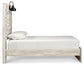 | Details | Includes headboard, footboard and rails, Made of engineered wood (MDF/particleboard) and decorative laminate, Wispy white finish over replicated oak grain with authentic touch, 2 decorative sconce lights, LED with 3 AA batteries, 2 slim-profile USB charging ports, Power cord included; UL-listed, Foundation/box spring required, sold separately, Mattress available, sold separately, Assembly required, Bed is compatible with an adjustable base | |