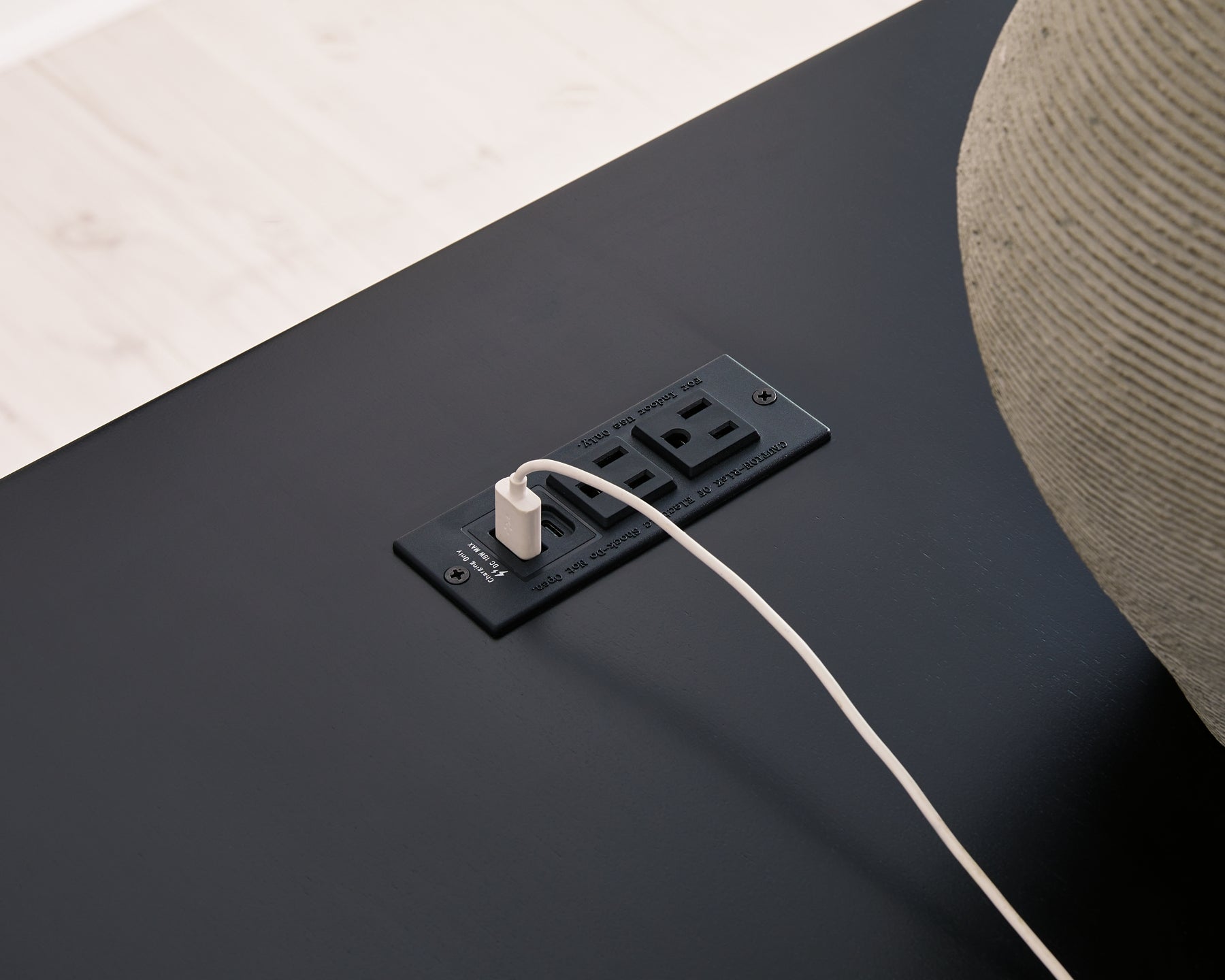 Double down on casual chic with the two-tone look of this credenza. With its warm brown and matte black finishes, it reflects your eye for modern design. The trend-right slatted styling on its doors brings added charm. And with the credenza's adjustable shelves, open storage and accessories drawer, keeping office essentials organized is a breeze.