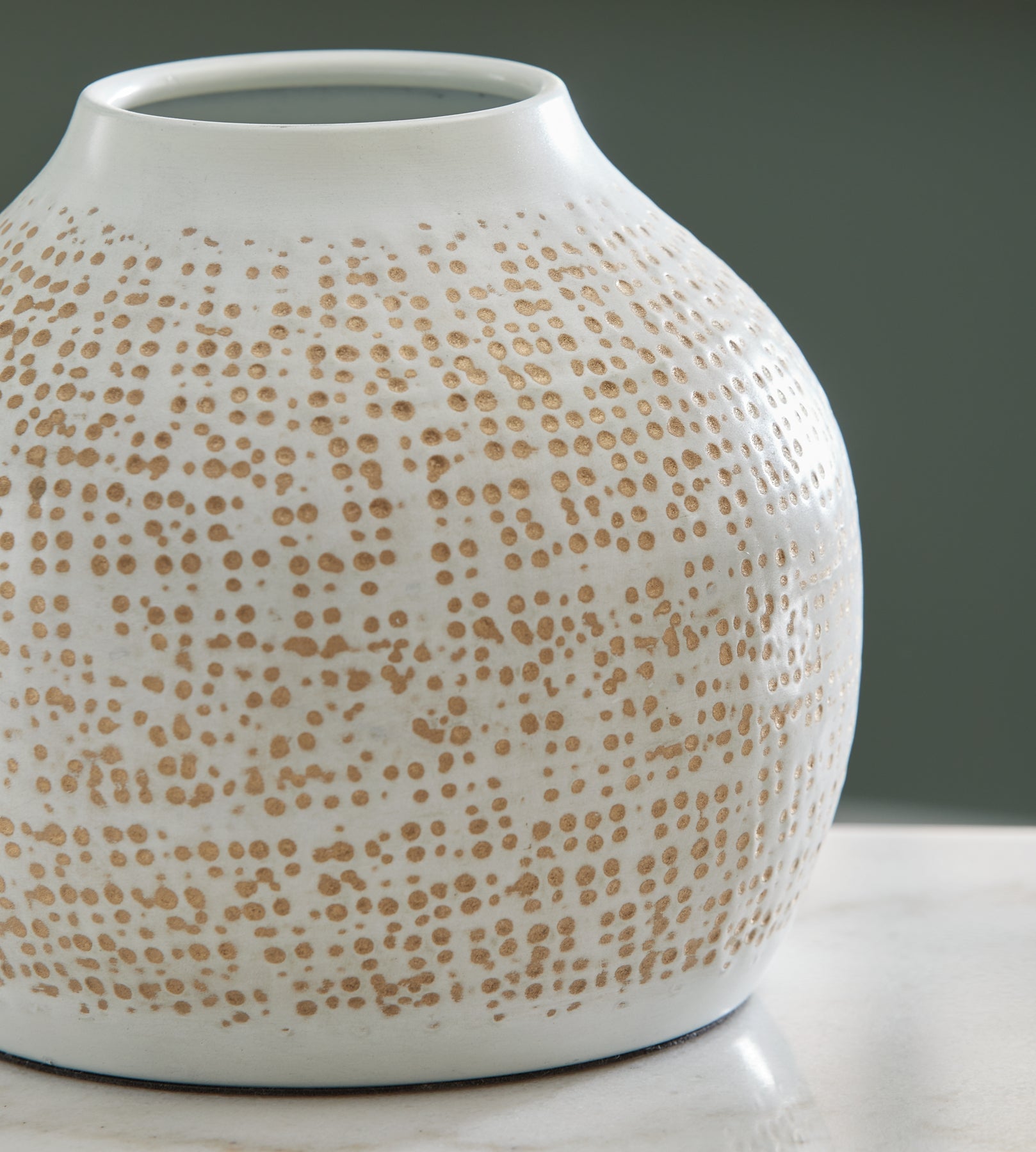 | Details | Includes 3 vases and 2 sculptures, Made of metal, Vases with white finish and goldtone accents, Sculptures with goldtone finish, Vases not watertight; suitable for faux/dried florals and greenery only | |